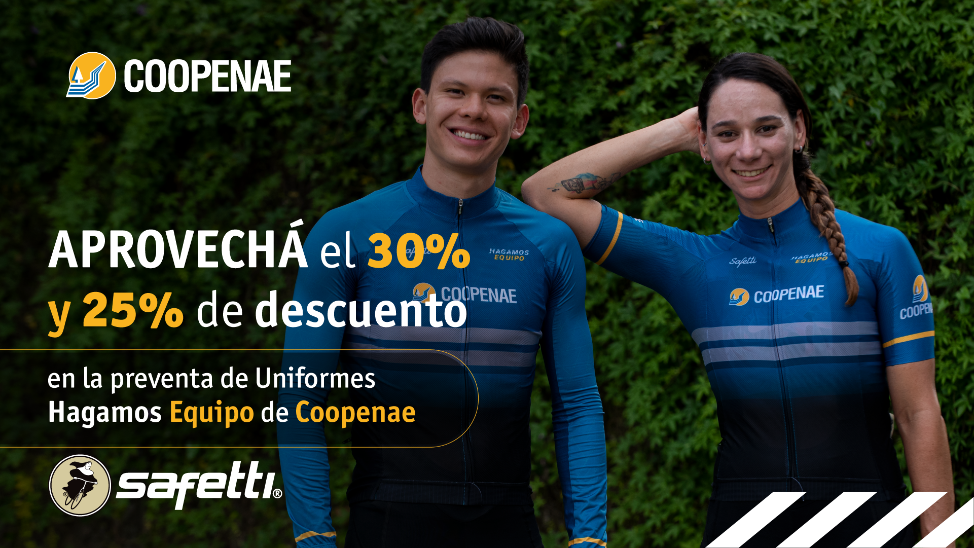 Adquirí el uniforme completo de ciclismo con 30% de descuento al pagar con tus tarjetas de débito o crédito Coopenae.